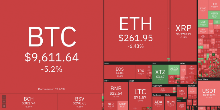 O preço do Bitcoin despencou em instantes pouco após as 18:00 (horário de Brasília) nessa quarta feira (19), descendo do patamar de US $ 10.165 a cerca de 9.347,00, quase 10% de queda. Após leve recuperação ativo é negociado a US $9.600,00 no momento de escrito desse artigo.