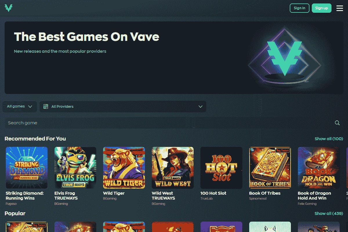 O Vave hoje é uma das principais opções em cassino de Bitcoin do mercado. Ele se consolidou como uma alternativa “padrão” para jogos de azar com criptomoedas ainda em 2025. Sua plataforma oferece um acervo extenso de jogos. Nela, estão inclusos: jogos de mesa, slots e cassino ao vivo