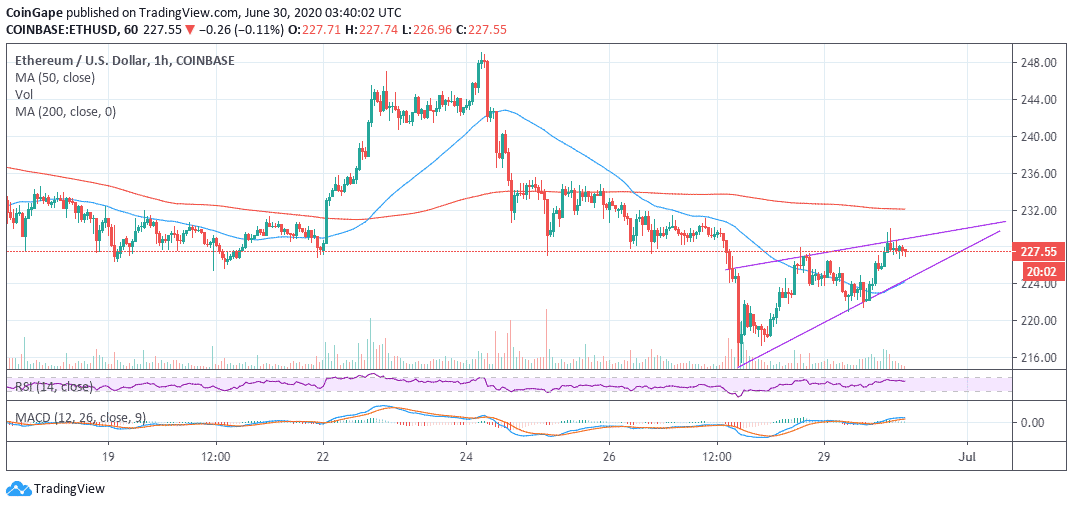 Enquanto isso, uma recuperação se ensaiou permitindo aos compradores reclamarem cada centímetro de terreno em direção aos $230. Infelizmente, uma barreira em $230, sabotou a missão de estender ganhos em direção aos $240. No momento em que esse artigo foi escrito, o ETH/USD está variando em torno de $227. Marginalmente acima do valor de mercado é inicial, mas há uma resistência de curto prazo em $228. O segundo obstáculo está em $230 e se for rompido poderia pavimentar o caminho para ganhos acima de $235 assim como de $240.